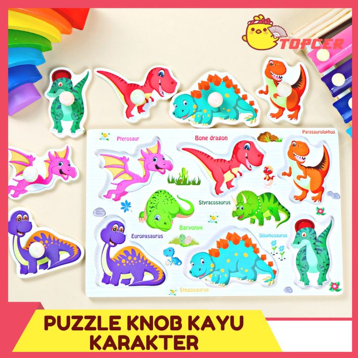 Puzzle Knob Wooden Puzzle Kayu Puzzle Buah Sayur Hewan Mainan Edukasi Anak Chunky Toys terlaris,