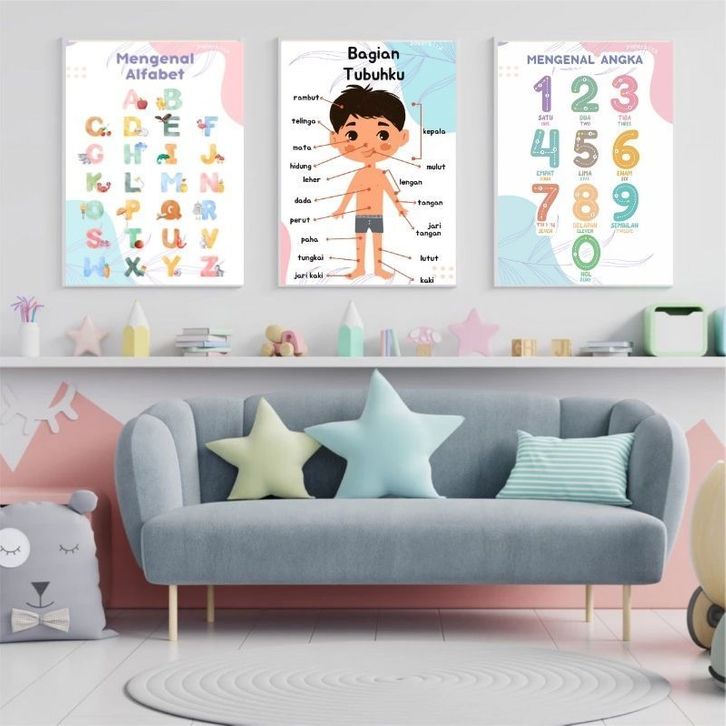 Poster Edukasi Anak Premium Wipe and Clean Aesthetic A3+ Belajar Pengenalan Anak Balita Paud Tk