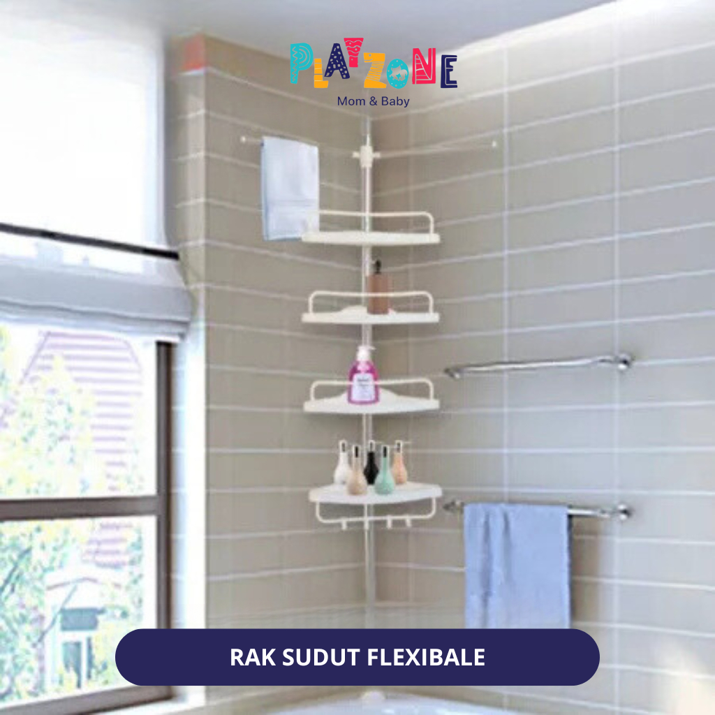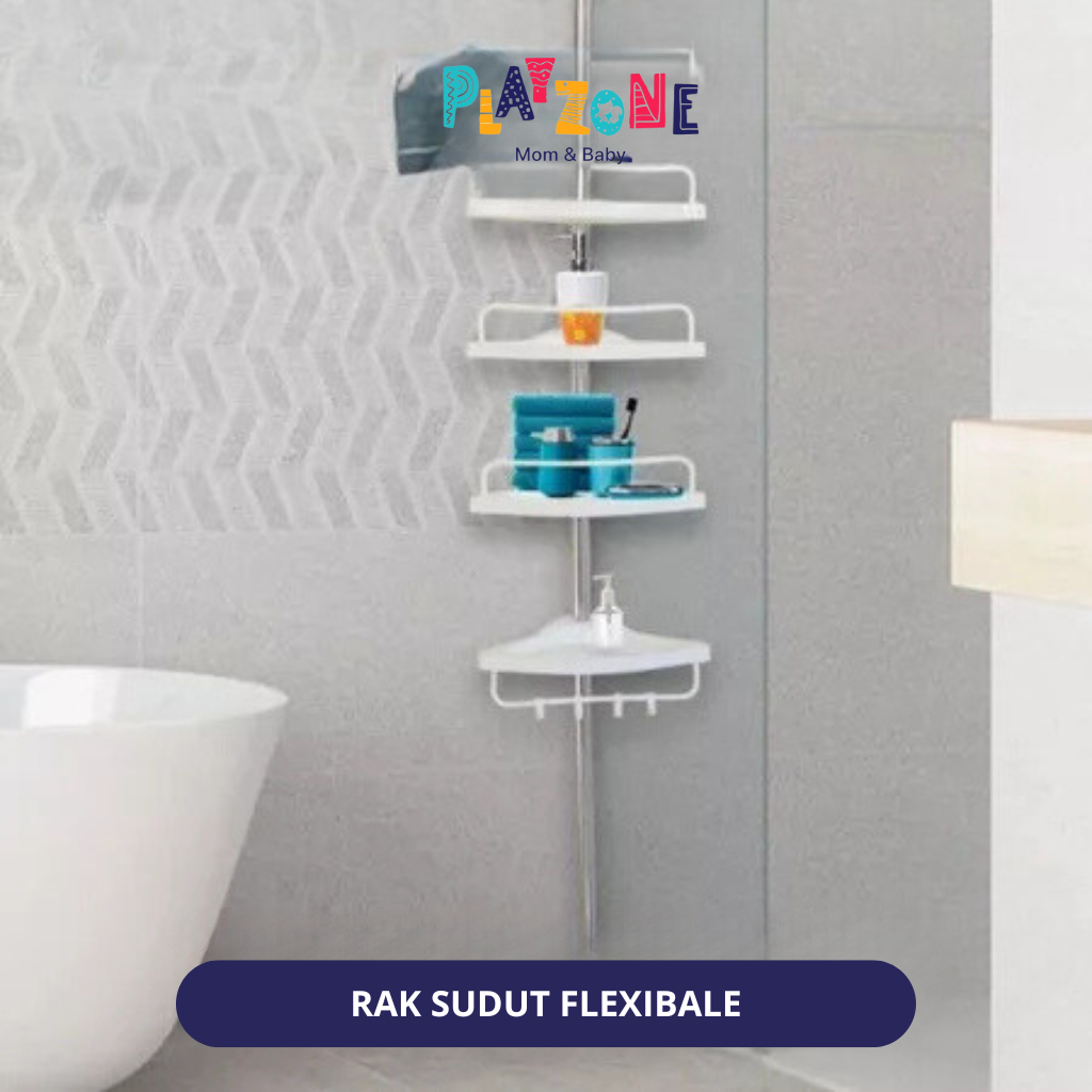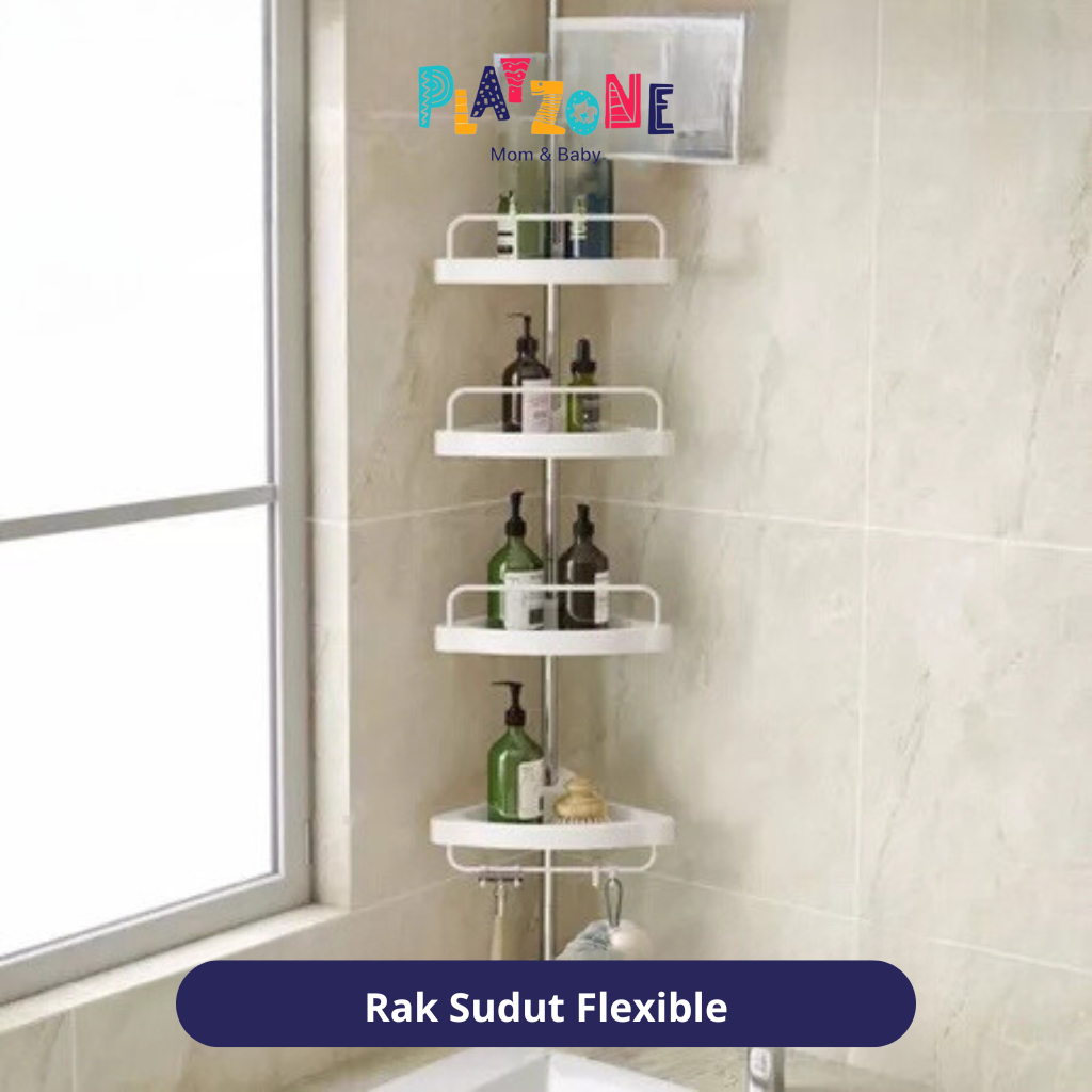 [PZ] Rak Tiang Flexible Kamar Mandi | Rak Gantung Sudut Organizer | Tempat Sabun Shampoo Odol
