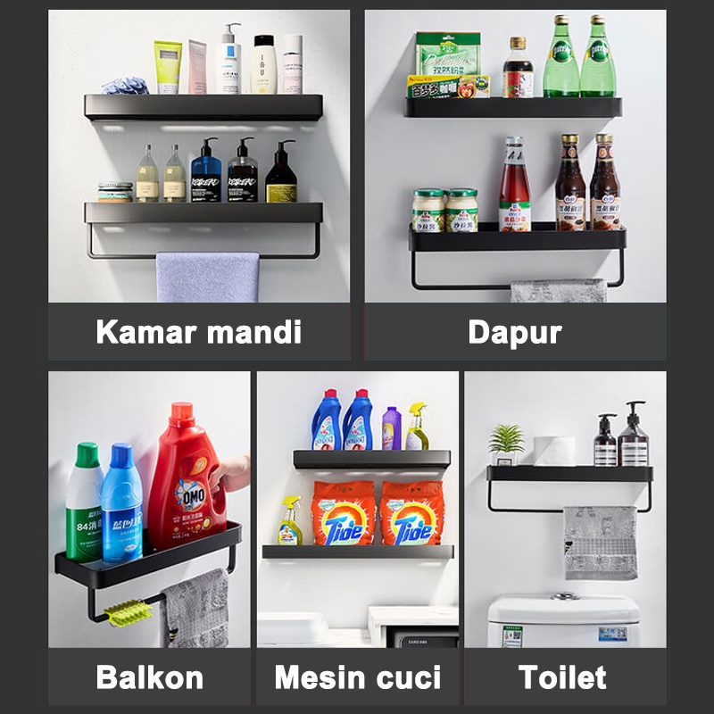Hitam Aksesoris Rak Kamar Mandi Organizer Shower Caddy Rak Handuk Rak Sudut Rak Dinding Tempel