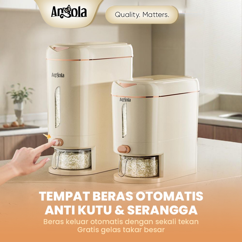 Angola Dispenser Beras Otomatis Anti Hama E29-E31 Tempat Wadah Penyimpanan Beras 5KG / 10KG Gratis Wadah Cuci Beras