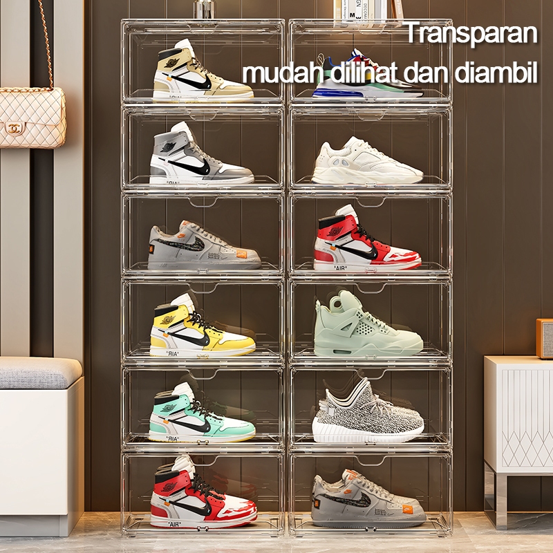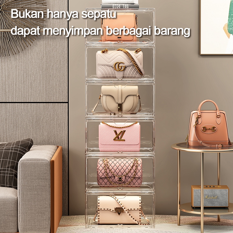 Rak Sepatu Akrilik Transparan Kotak Penyimpanan Serbaguna Pajangan
