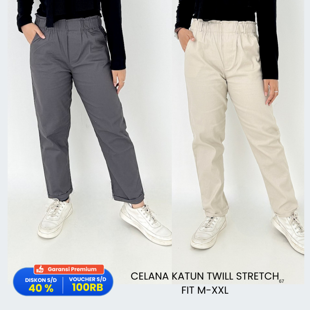 Celana Katun Spandex Stretch Wanita Fit M-XXL Loose Baggy Pinggang Karet Lezahrasignature long Pant Bagy Aulia