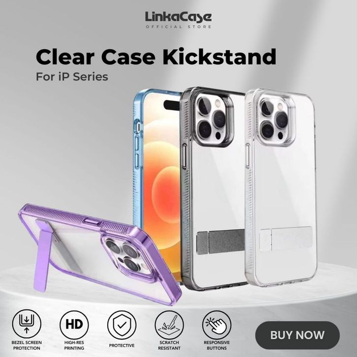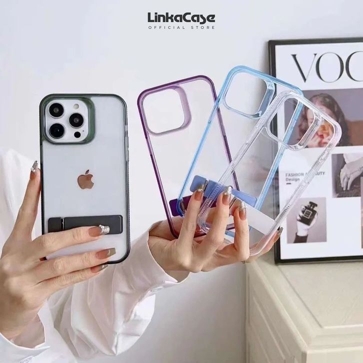 Clear Case iPhone 11 13 14 12 15 Pro Max Acrylic Hardcase Metal Kickstand Premium Shockproof