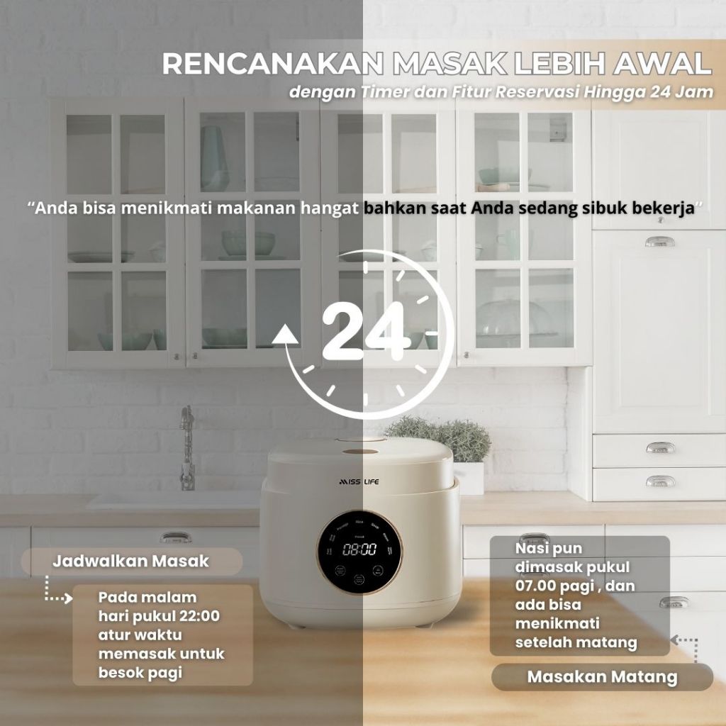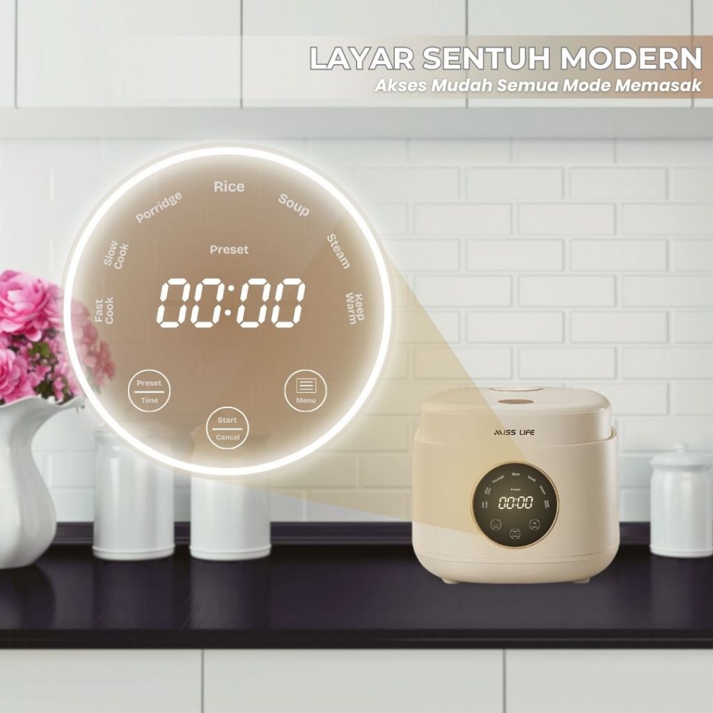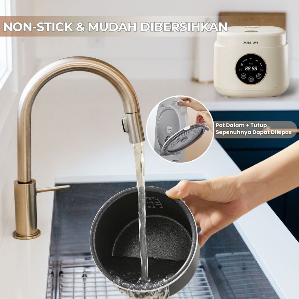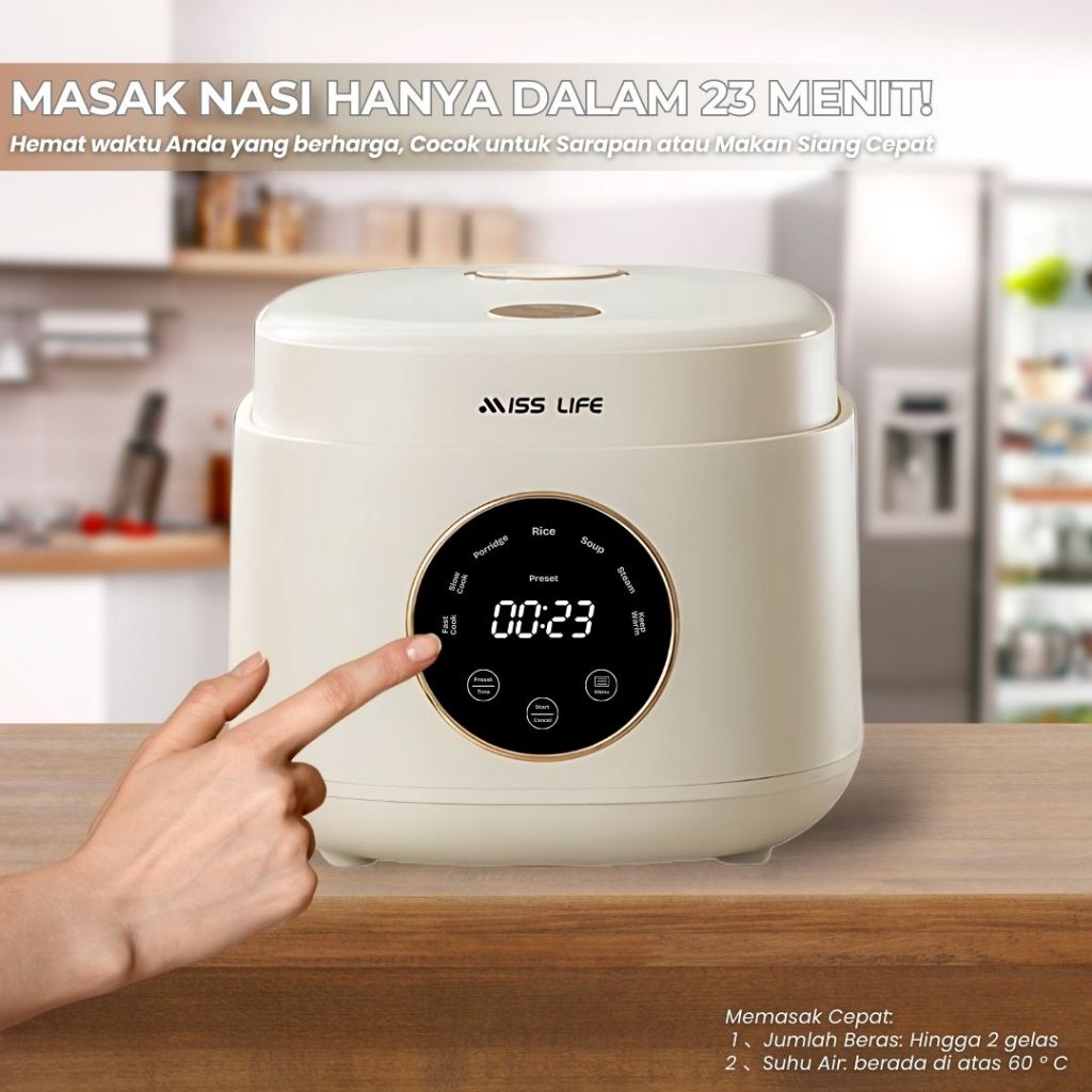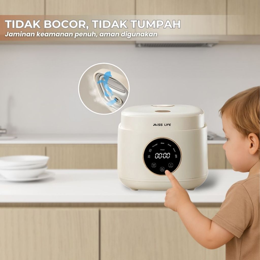 MISS LIFE Digital Rice Cooker 0,8 / 1,2 Liter Nasi, Anti Lengket Panci Rice Cooker Digital Anti lengket Portabel Mejik