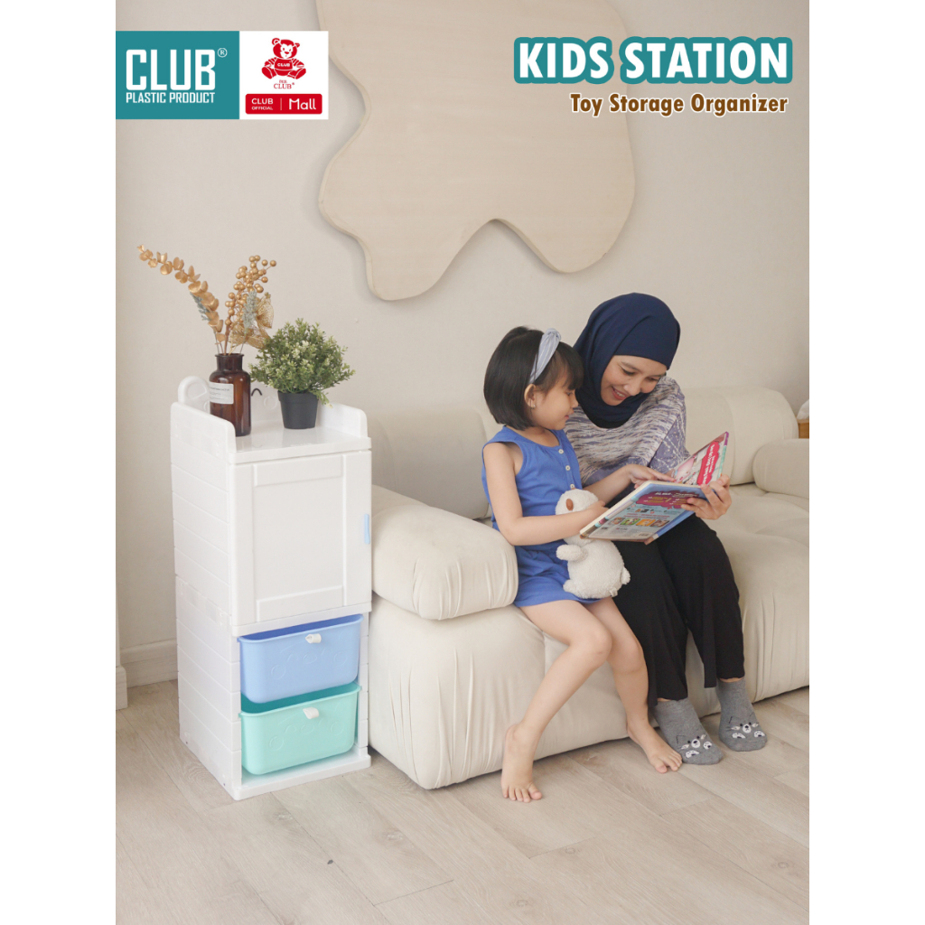 CLUB Kids Station - Tempat Penyimpanan Buku Laci Mainan - Box Laci - Rak Serbaguna Aesthetic