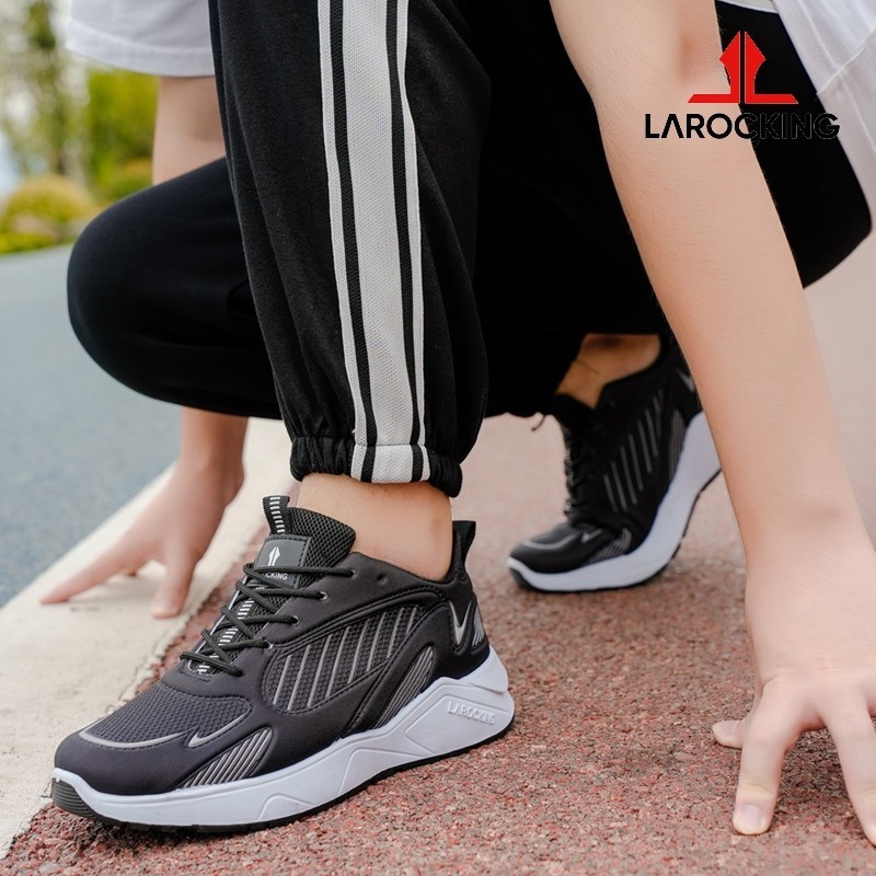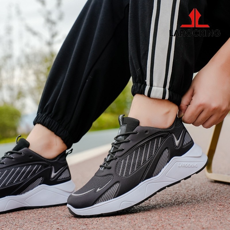 Larocking - Vetro Hitam Putih | Sepatu Sneakers Running Gym Shoes
