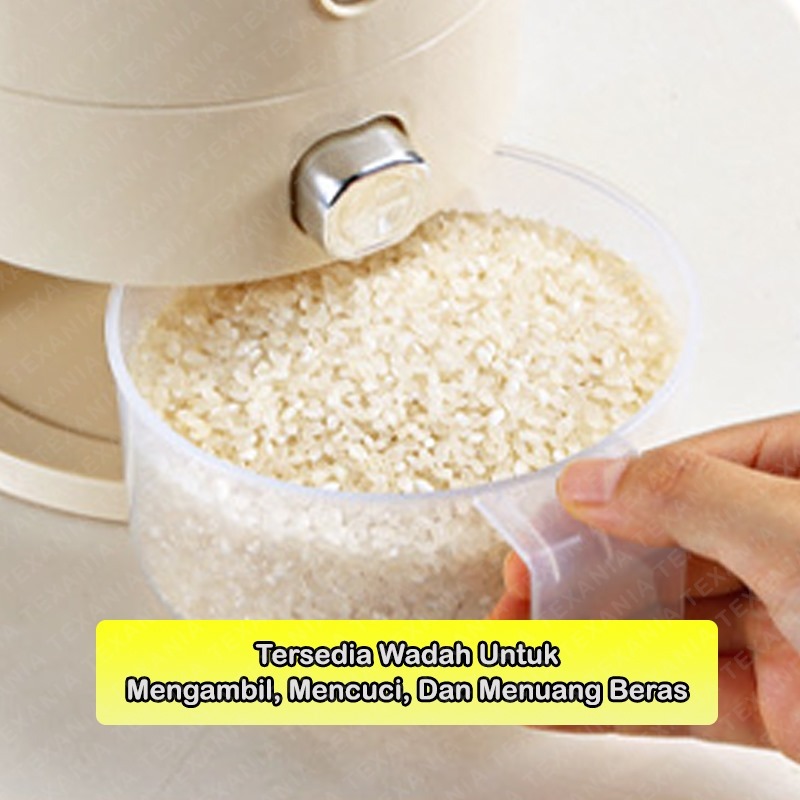 TEXANIA Dispenser Beras Anti Kutu Serangga 10KG Tempat Penyimpanan Serbaguna BPA FREETempat Wadah Penyimpanan Beras Otom