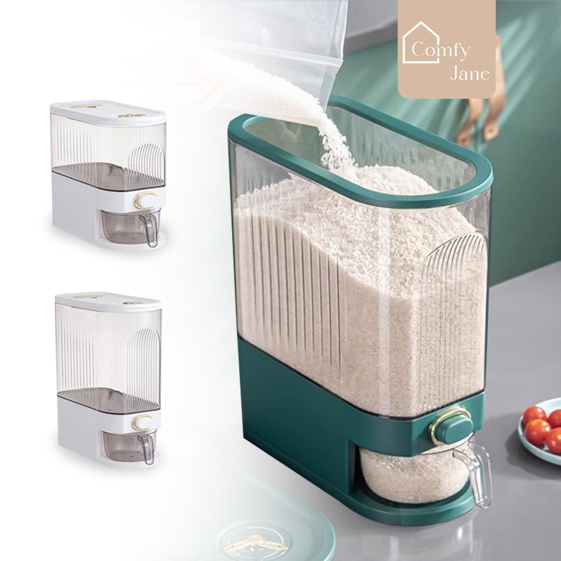 Comfyjane Dispenser Beras Otomatis Kotak Penyimpanan Beras Makanan Kering untuk Makanan Hewan Bening