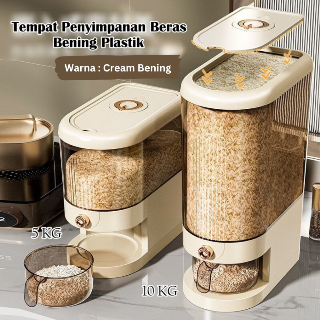 Alby Mart Dispenser Beras Mewah Estetik Kotak Tempat Wadah Penyimpanan Beras Rice 5Kg 10Kg