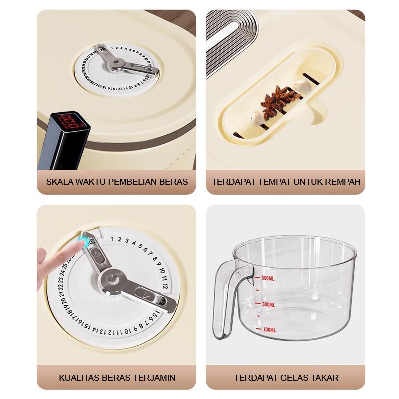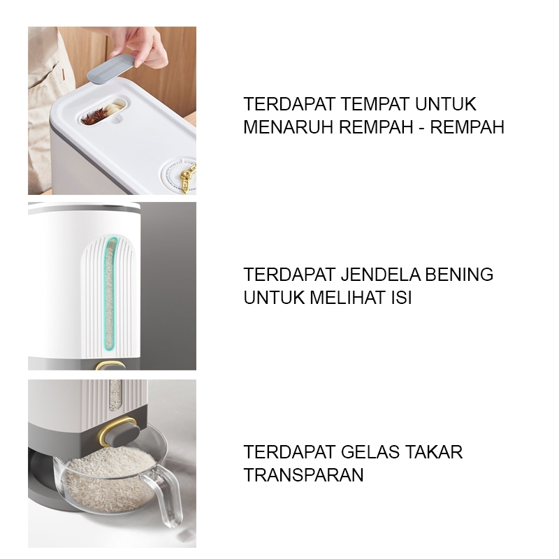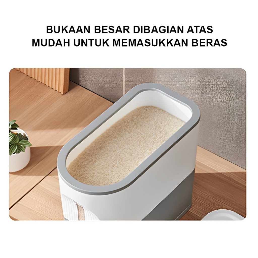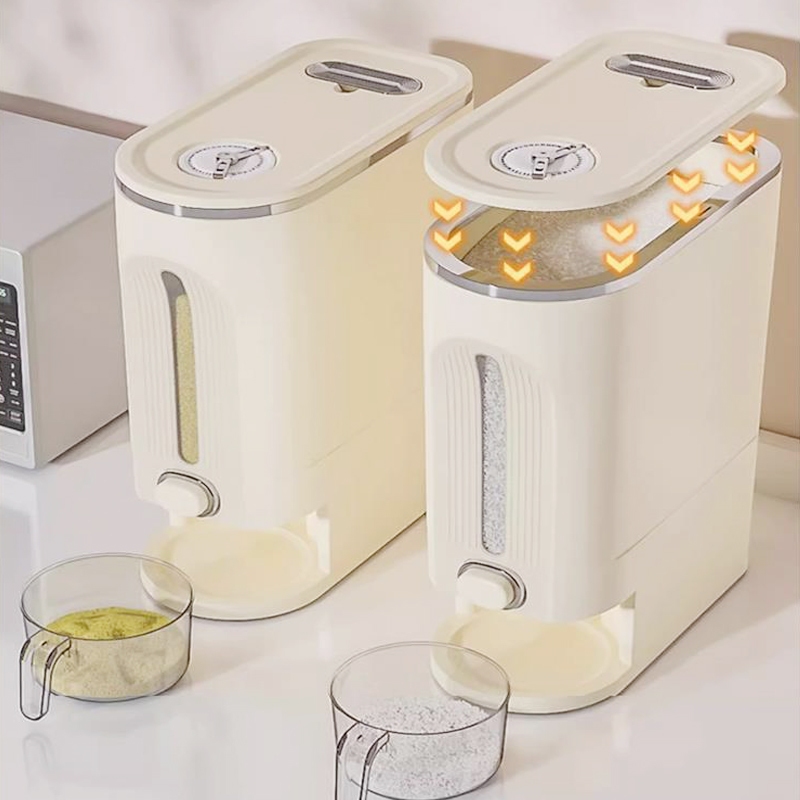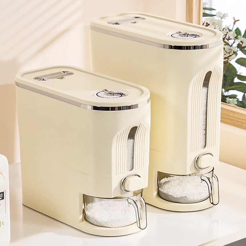 U-Living Dispenser Beras Cream Serbaguna Otomatis Dengan Gelas Takar Kotak Penyimpanan Beras Makanan Kering Anti Kutu FB