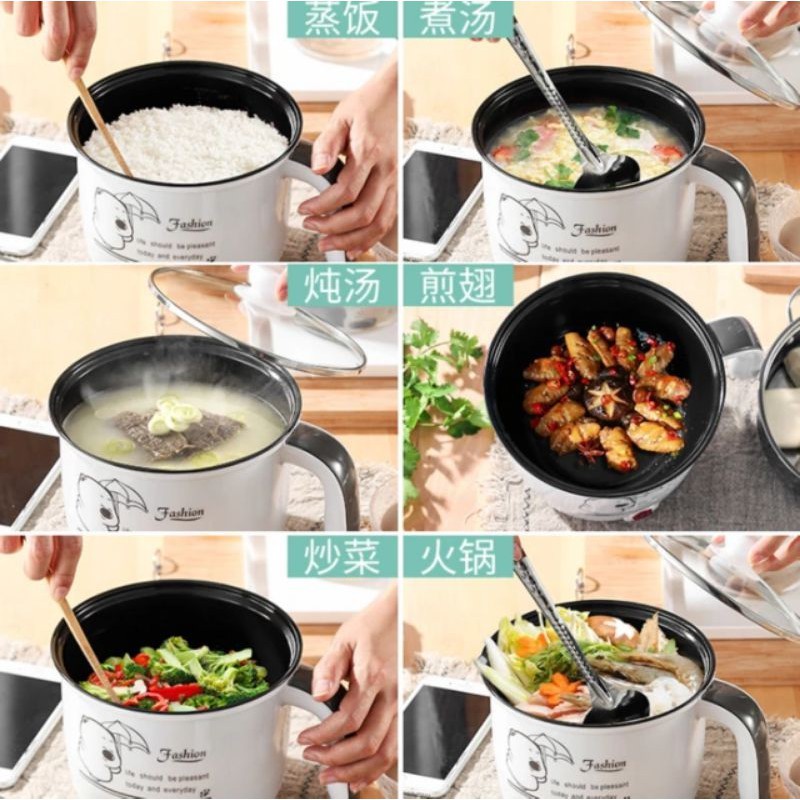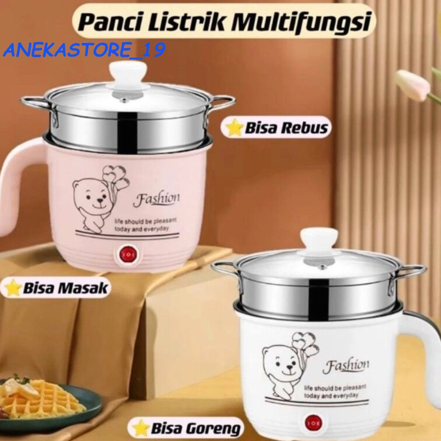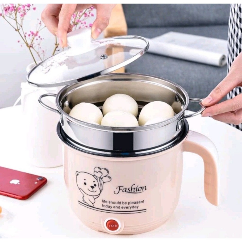 Panci listrik 3 in1 uk 18cm Free Kukusan Anti Lengket / Mini Rice Cooker Kapasitas 1.5L Anti Lengket