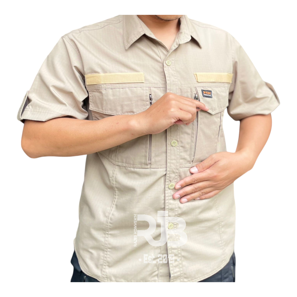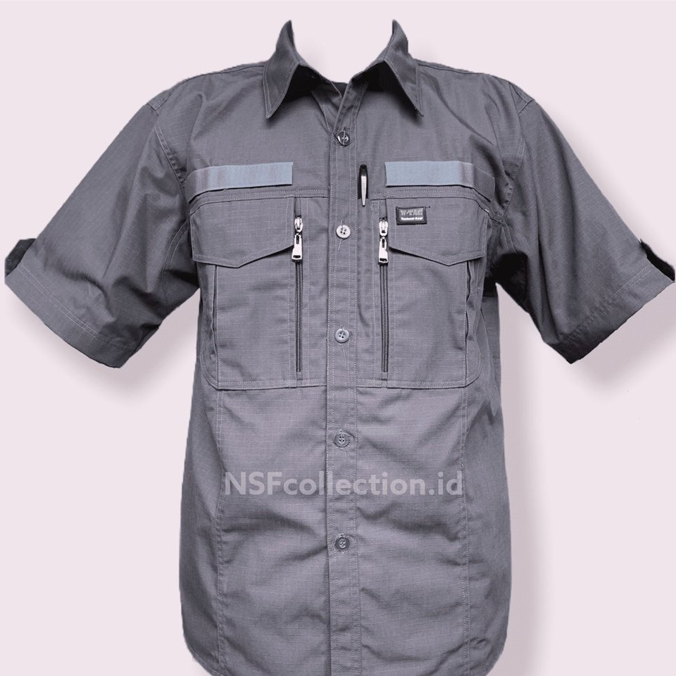 Kemeja Tactical W TAC Lengan Pendek Putih Baju Lapangan Outdoor Kantor Formal Casual Basic Unisex