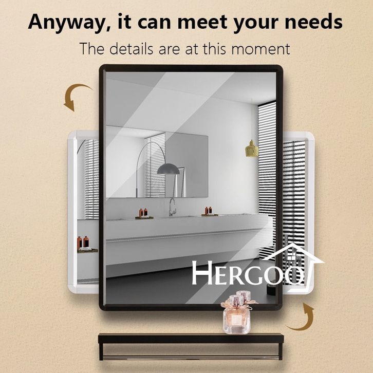 【Garansi】Cermin Gantung Dinding 40*60cm Cermin Kamar Mandi Persegi Panjang Dengan Rak Handuk Rak Cermin Terpasang Di Din