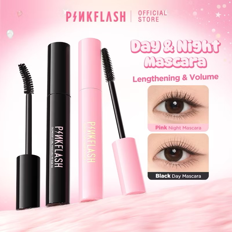 PINKFLASH Day & Night Maskara Lengthening Volume Tahan air Tahan lama Mascara