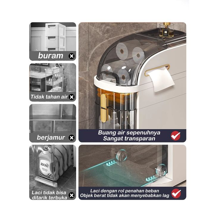 【Desain Ramping 18cm】Lemari Laci Plastik Kabinet Plastik Serbaguna Rak Toilet Kamar Mandi