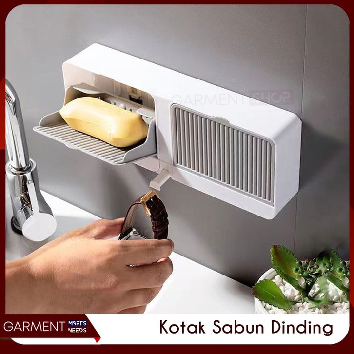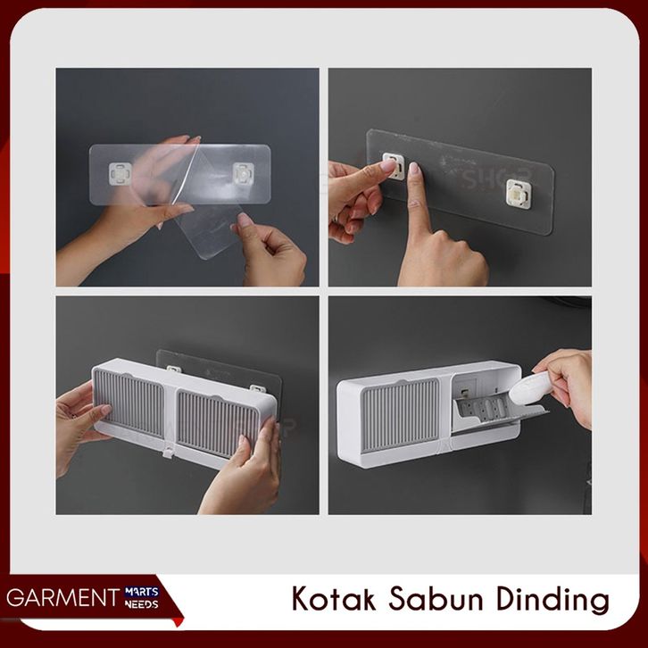 Rak Sabun Batang Buka Tutup Tempel Dinding Box Kotak Sekat Kamar Mandi Tahan Debu