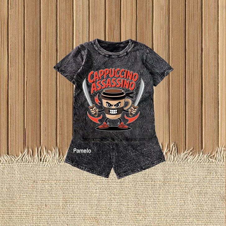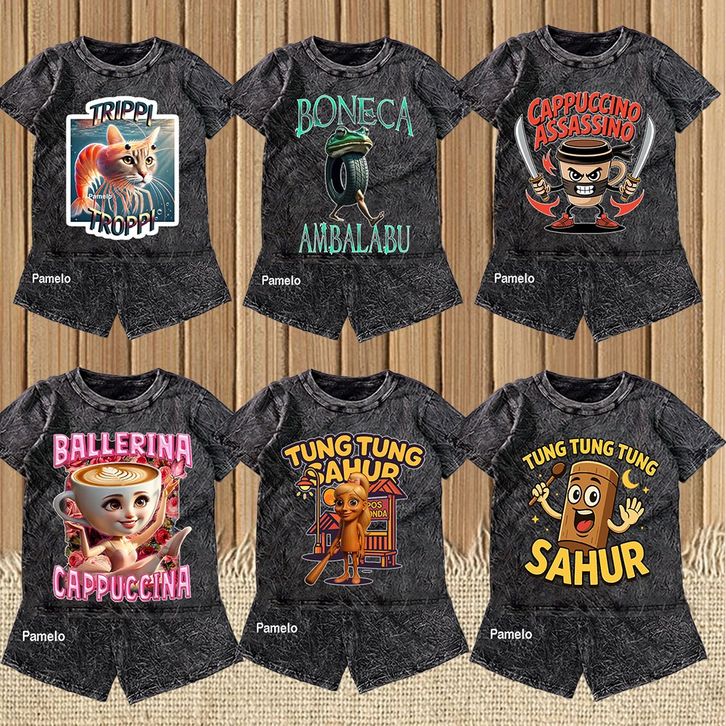 Pamelo.id Stelan Anak Tung Tung Sahur 2 Unisex Anomali Brainrot italia One set Anak Stone Wash Set Distro Basic Anak