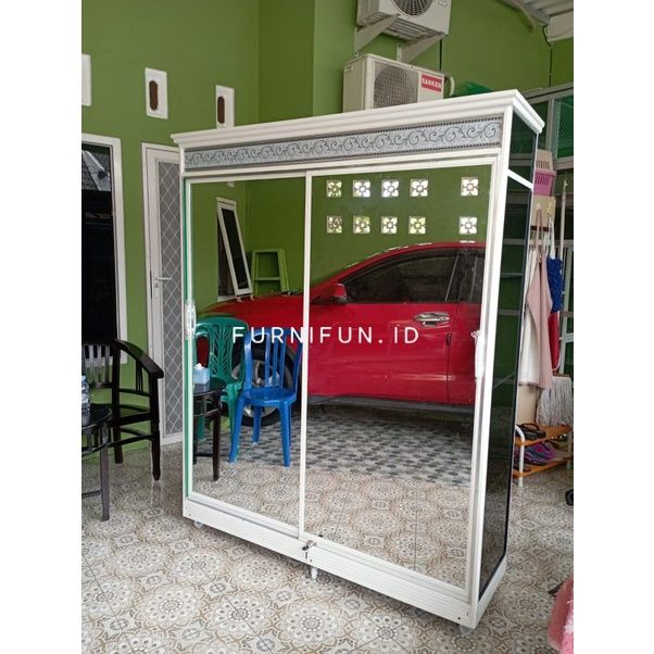 PROMO Lemari Baju Sliding Aluminium / Lemari Baju Kaca ORIGINAL