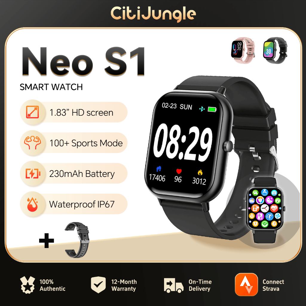 Smartwatch CitiJungle Neo S1 _ Layar 1.83", Tahan Air IP68, Bluetooth, Pengingat Pesan, Jam Tangan Pintar