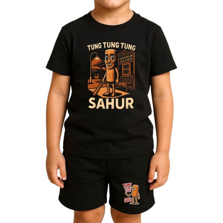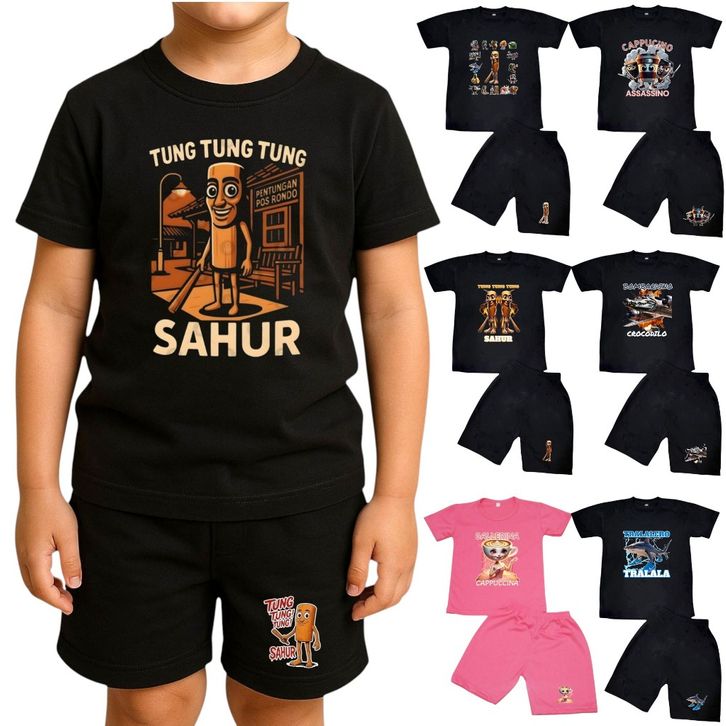 Setelan Baju Kaos Distro Harian Anak Karakter Anomali Tung Tung Tung Sahur Untuk 1-10 Tahun