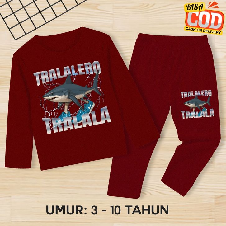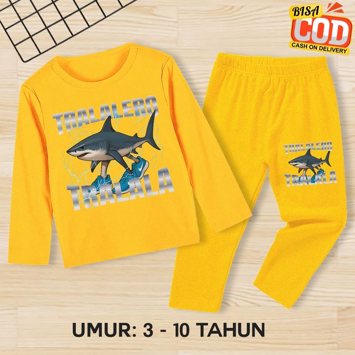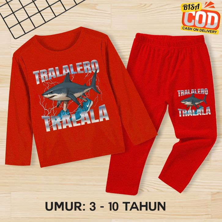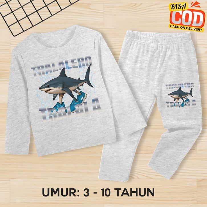 Setelan Baju Anak Laki-Laki Dan Perempuan anomali tralalero tralala Umur 3-10 Tahun Lengan Panjang