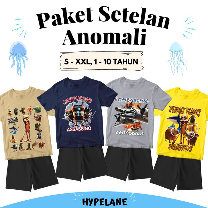 Paket Usaha Baju Kaos Setelan TUNG TUNG SAHUR Anak Laki Laki Motif Anomali Lucu Usia 1 - 10 Tahun