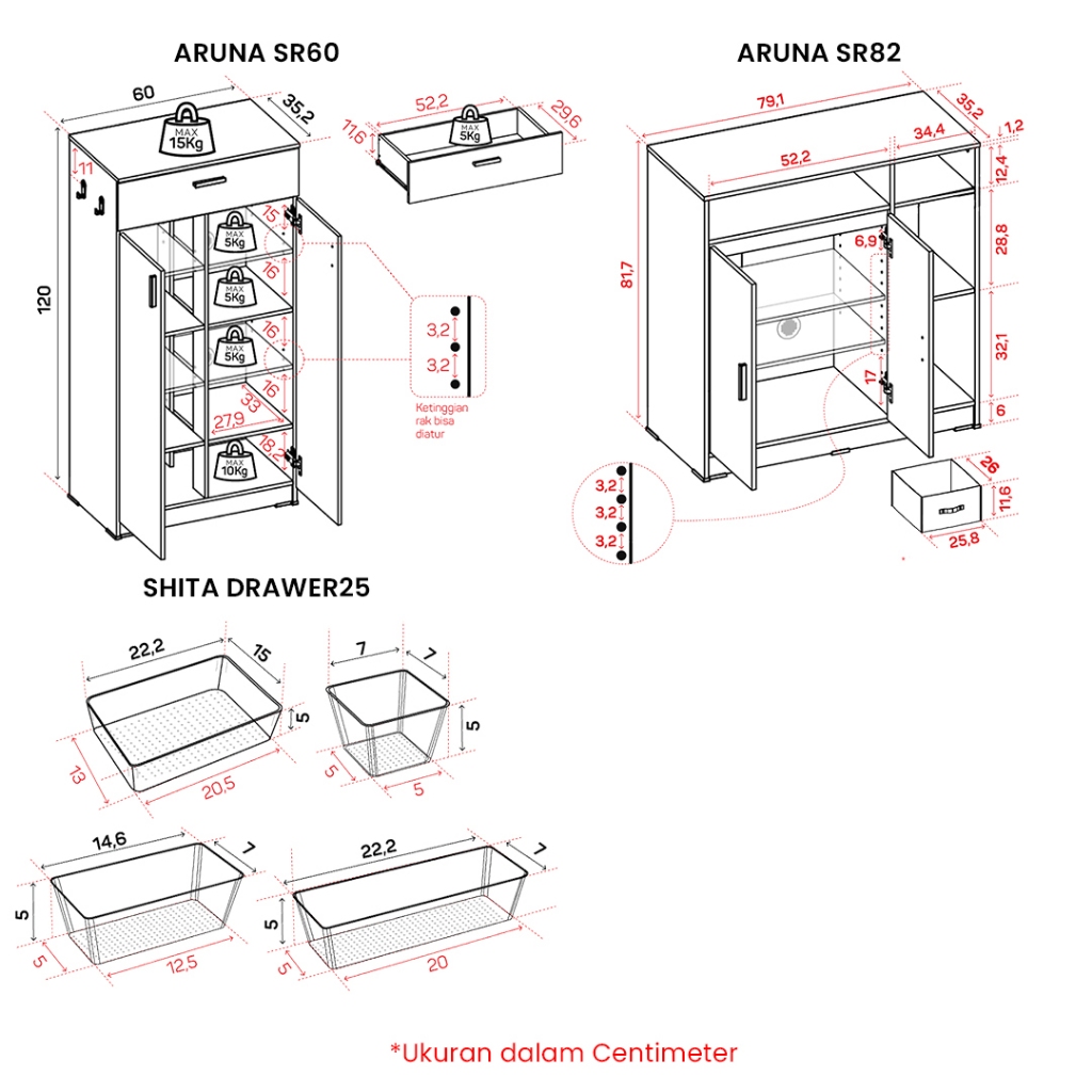 Rak Sepatu Pira Metropolis Dengan Laci Serbaguna Rel Besi Grade