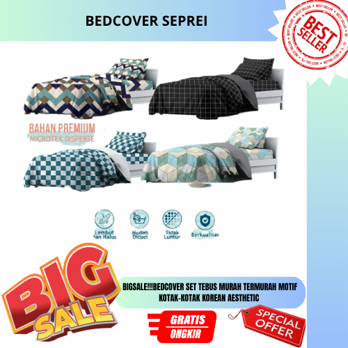 BIGSALE!!!BEDCOVER SET TEBUS MURAH TERMURAH MOTIF KOTAK-KOTAK KOREAN AESTHETIC