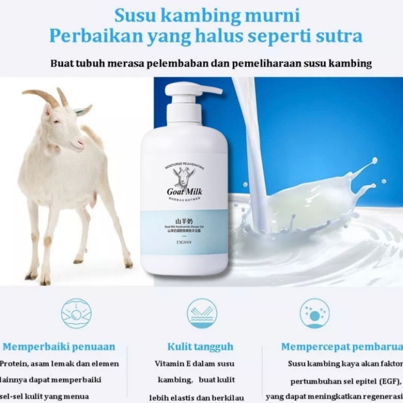 ⭐ ORI⭐Goat Milk Body Wash Korea Sabun Cair Susu Kambing Domba Pemutih Kulit Seluruh Badan Tubuh Goats Milk Shower Gel Ni