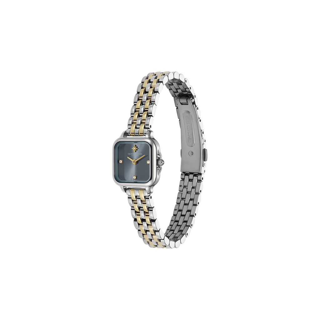 Jam Tangan Olivia Burton Soft Square Chalk Blue Dial with North Star Details 5 Link Bracelet 20mm - 24000258