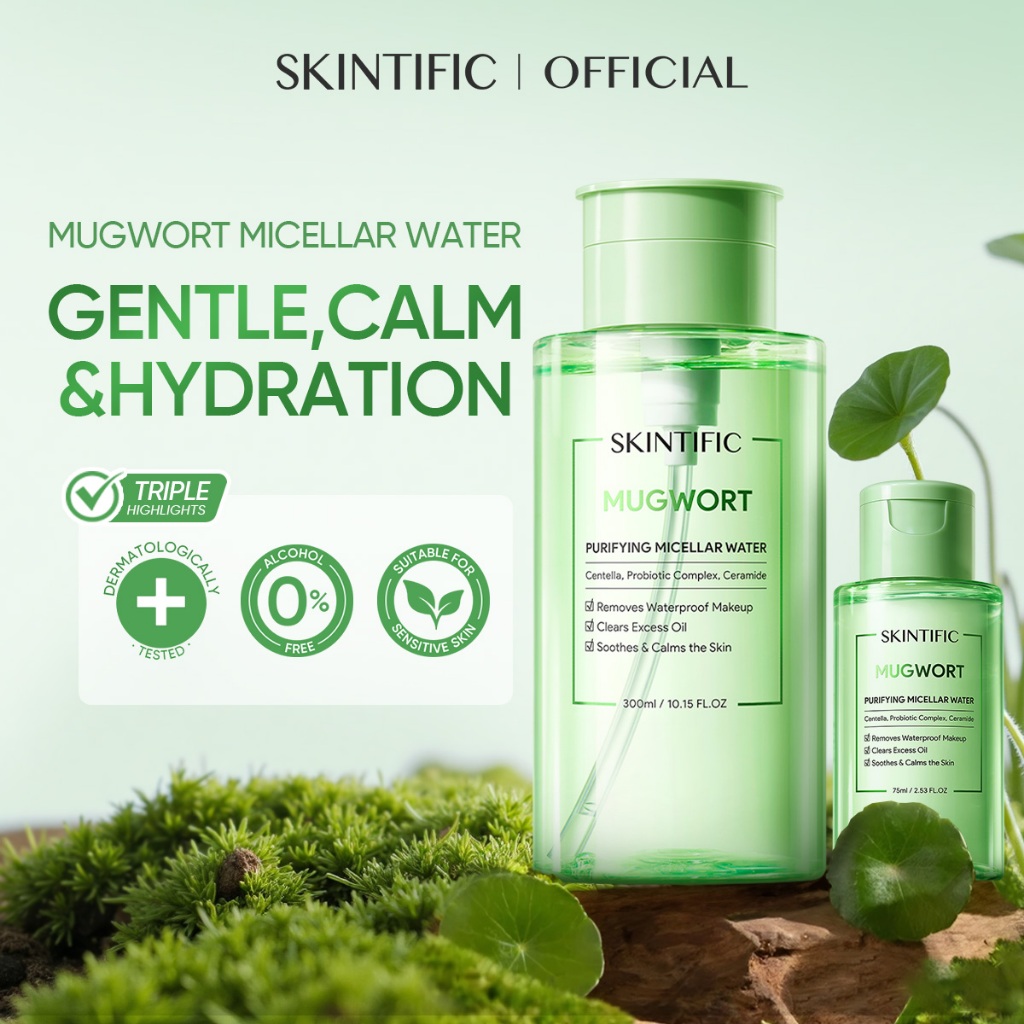SKINTIFIC Make Up Removers- Mugwort Purifying Micellar Water & Cleaning Balm | Pembersih Cleanser Makeup Sekali Bersih T