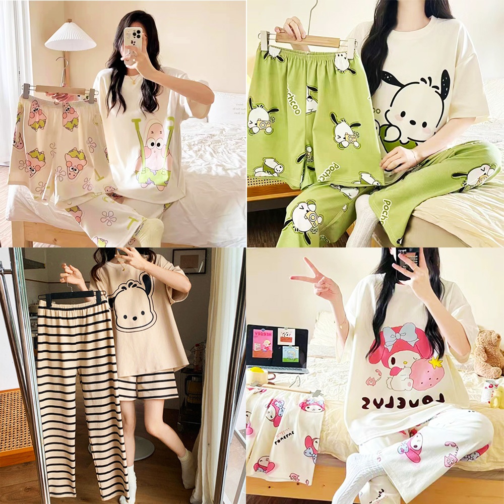3 IN 1 BAJU TIDUR PIYAMA IMPORT BAHAN MILK SHREDS