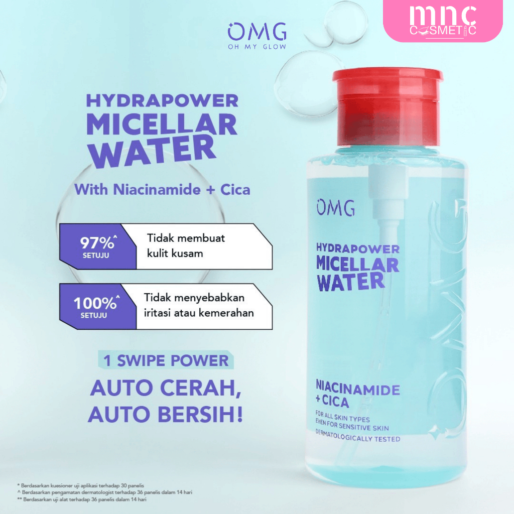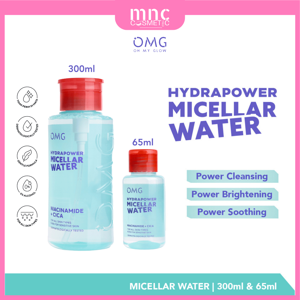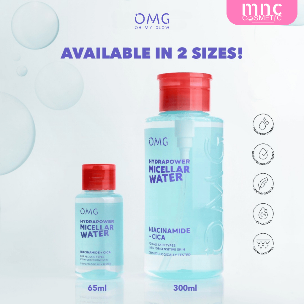 NEW! OMG OH MY GLOW HydraPower Micellar Water 65 ml & 300 ml with Niacinmide & Cica - Mencerahkan, Melembabkan, Fresh