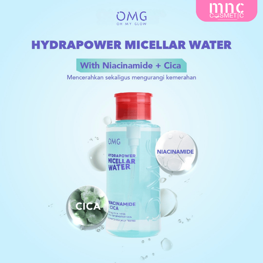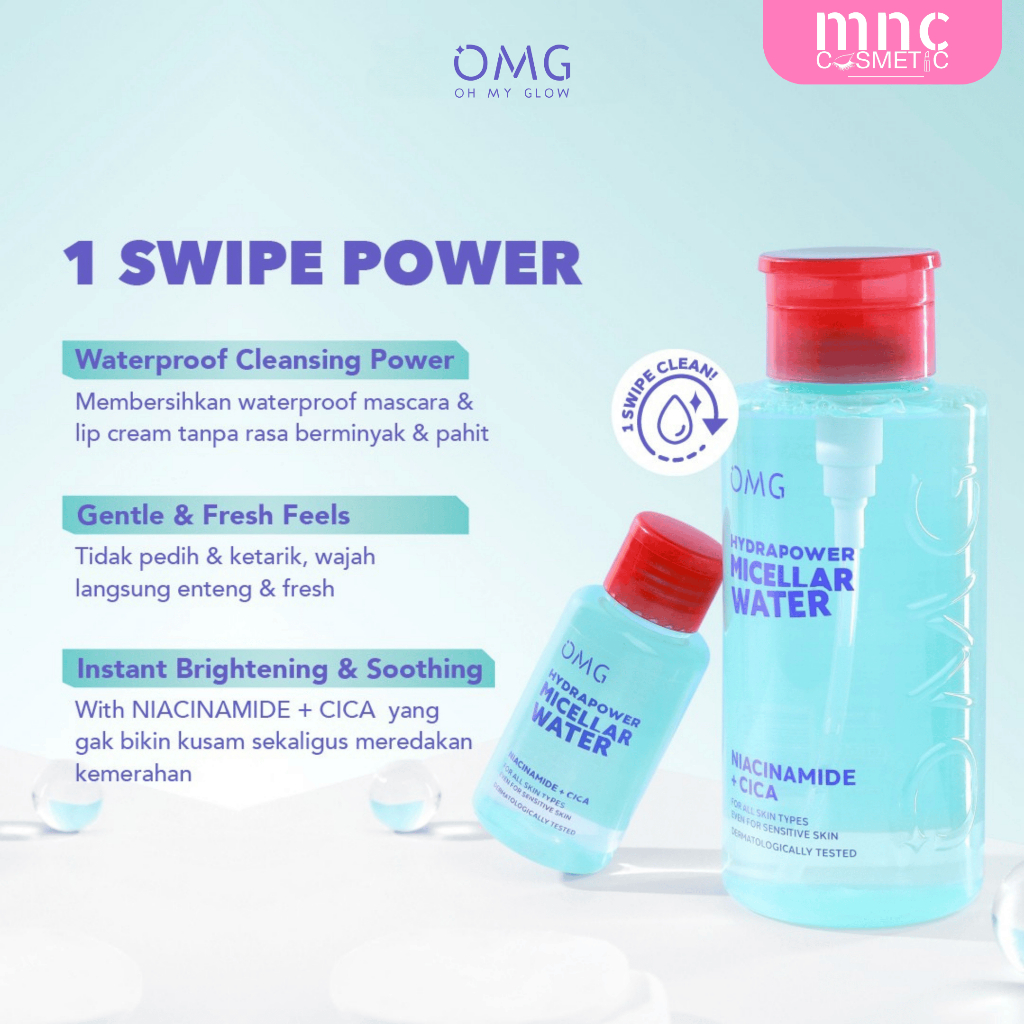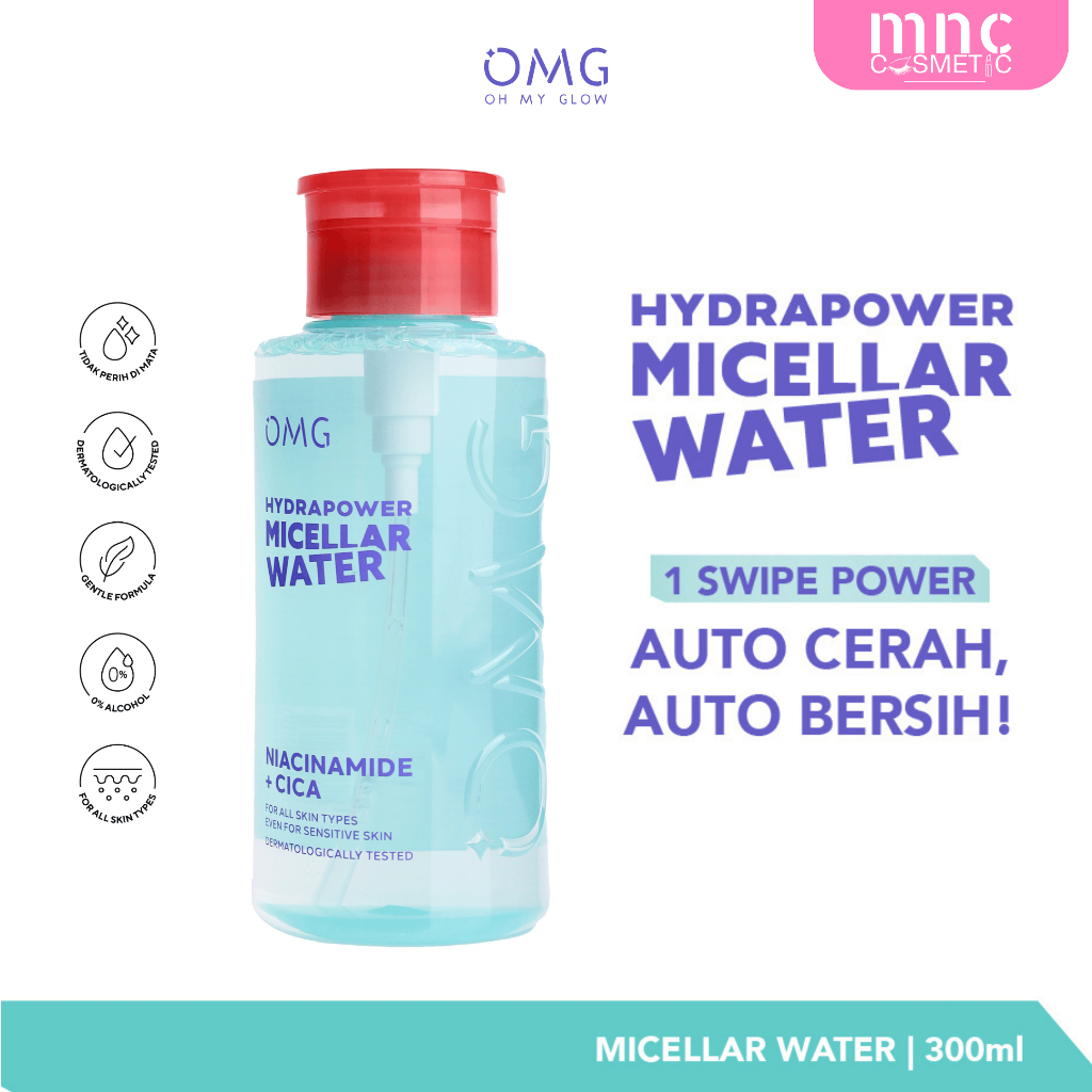 NEW! OMG OH MY GLOW HydraPower Micellar Water 65 ml & 300 ml with Niacinmide & Cica - Mencerahkan, Melembabkan, Fresh