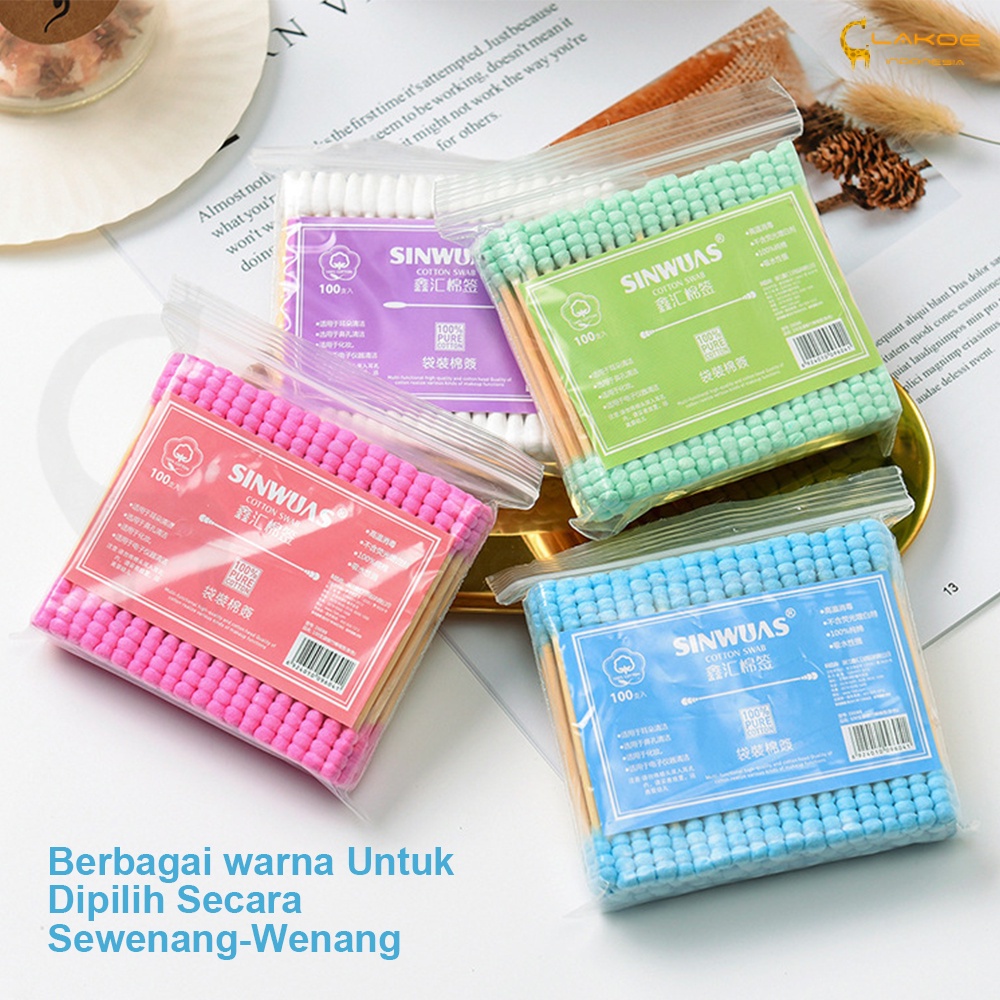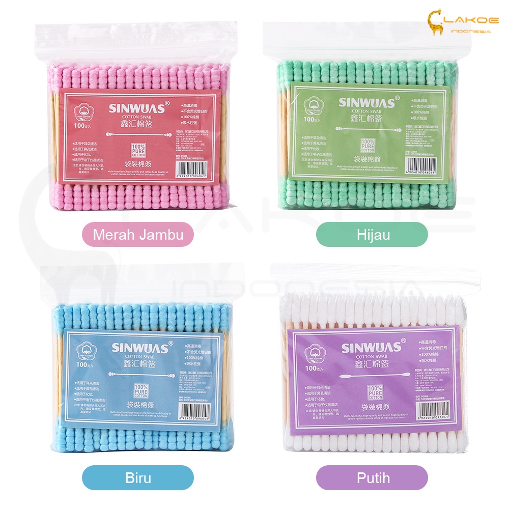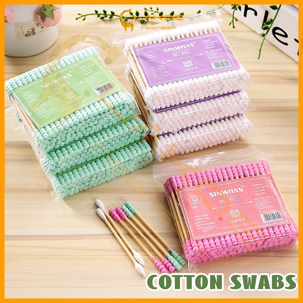 100PCS COTTON BUDCOTTON SWABS PACK BABY THIN COTTON BUD BERWARNA GANDASPIRAL UJUNG KAPASCOTTON SWAB