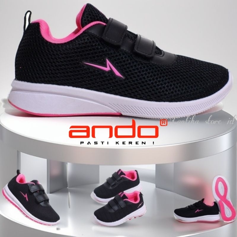 Sepatu Anak-Anak Sekolah ANDO sporty Size 29/37 Hitam/Fushia Sepatu Cowok Cewek Kekinian