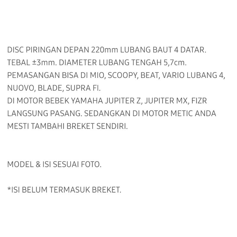 DISCON PIRINGAN SUNSTAR 220MM LUBANG 4 JUPITER Z, MX, MIO, SCOOPY, BEAT, VARIO, NUOVO, BLADE, SUPRA FI