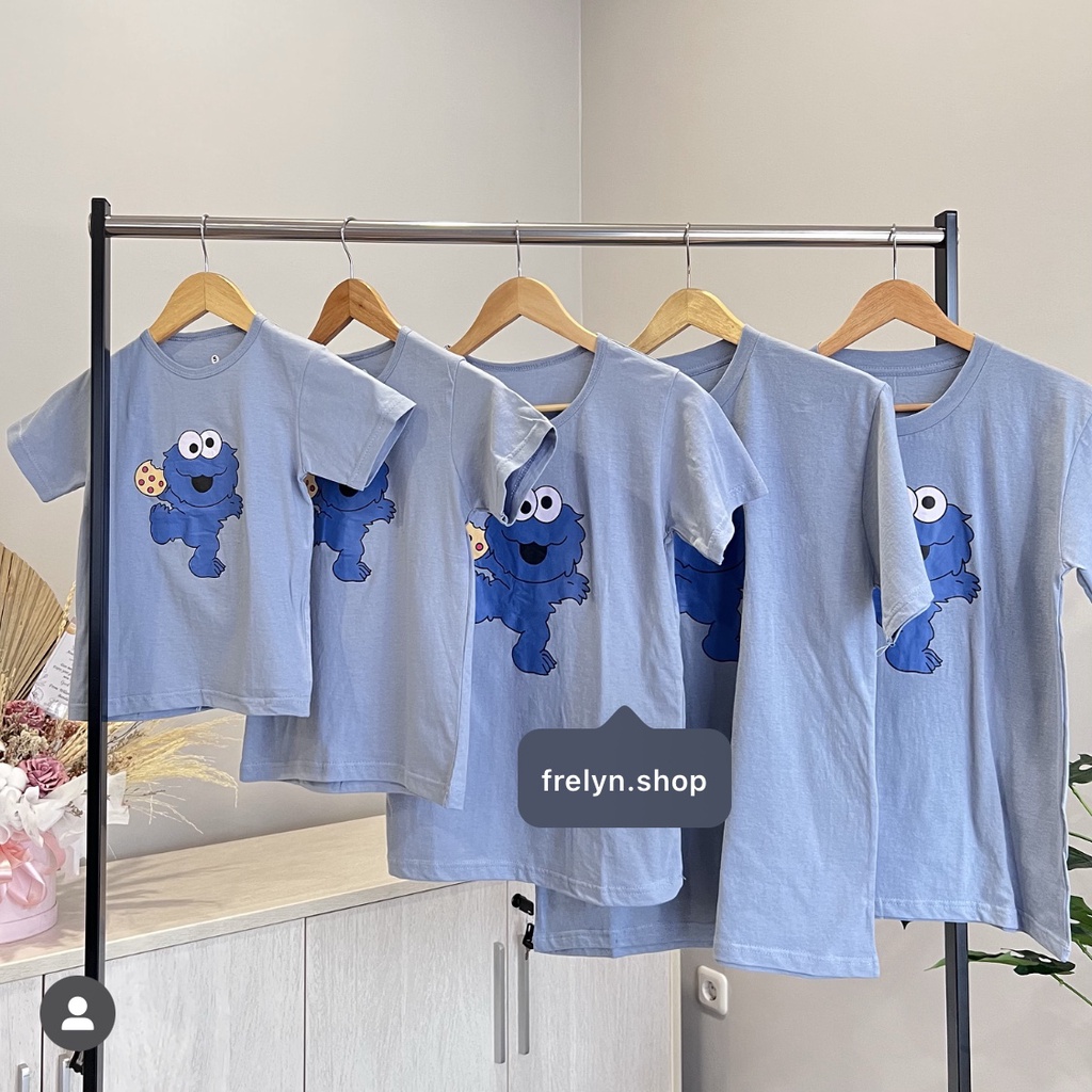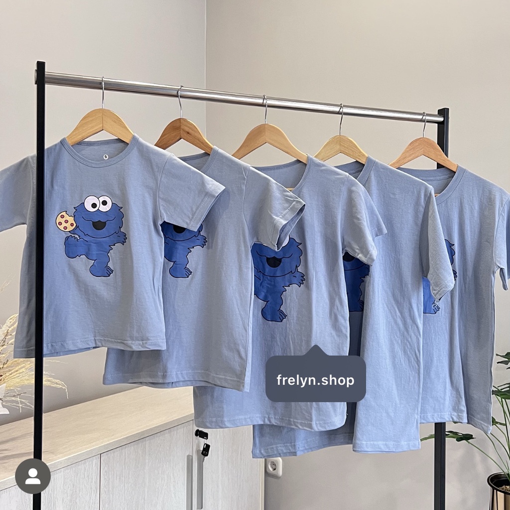 KAOS DUSTY BLUE OVERSIZE | KAOS COOKIE MONSTER KELUARGA BAJU TSHIRT TUMBLR TEE BIRU KOREAN KOREA PENDEK WANITA POLOS PEL