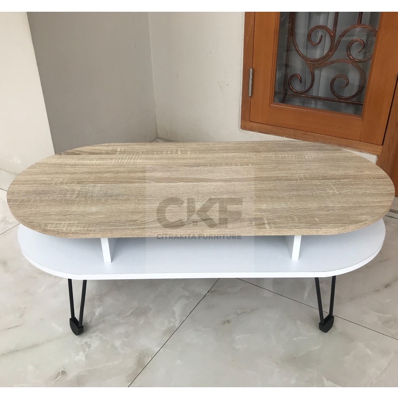 MEJA TAMU MINIMALIS KAYU ESTETIK KAKI BESI COFFEE TABLE SCANDINAVIA
