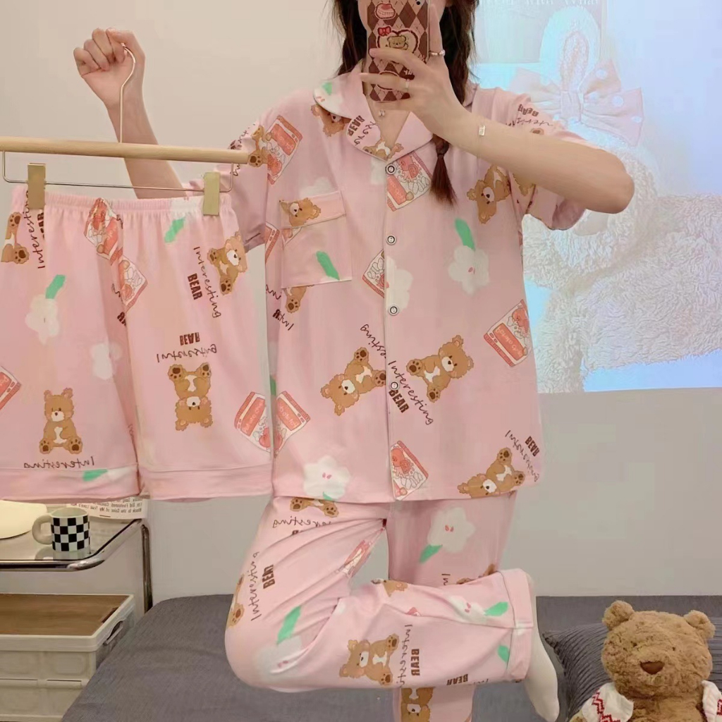 3 IN 1 BAJU TIDUR PIYAMA PAJAMAS KANCING KOREA SLEEPWEAR IMPORT