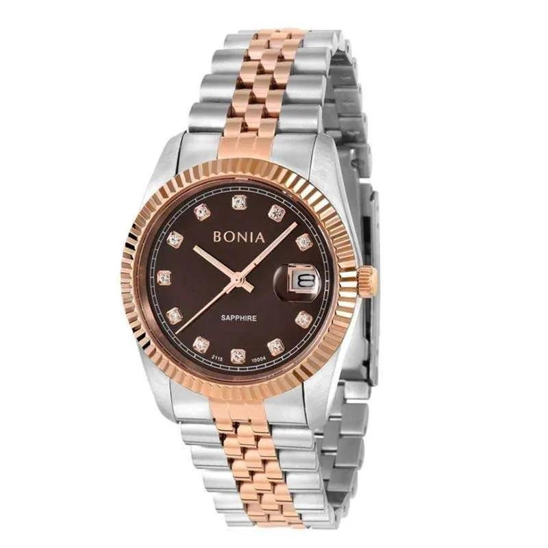 Jam Tangan Pria Bonia Noble Brown Dial Stainless Steel Analog B10550-1647 Original