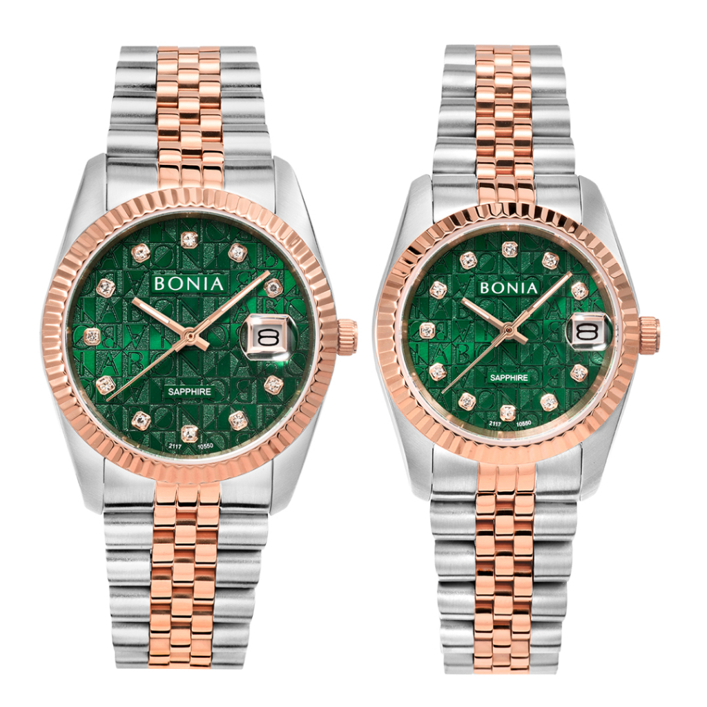 Jam Tangan Couple BONIA Noble Green Monogram B10550-1696/3696 Original