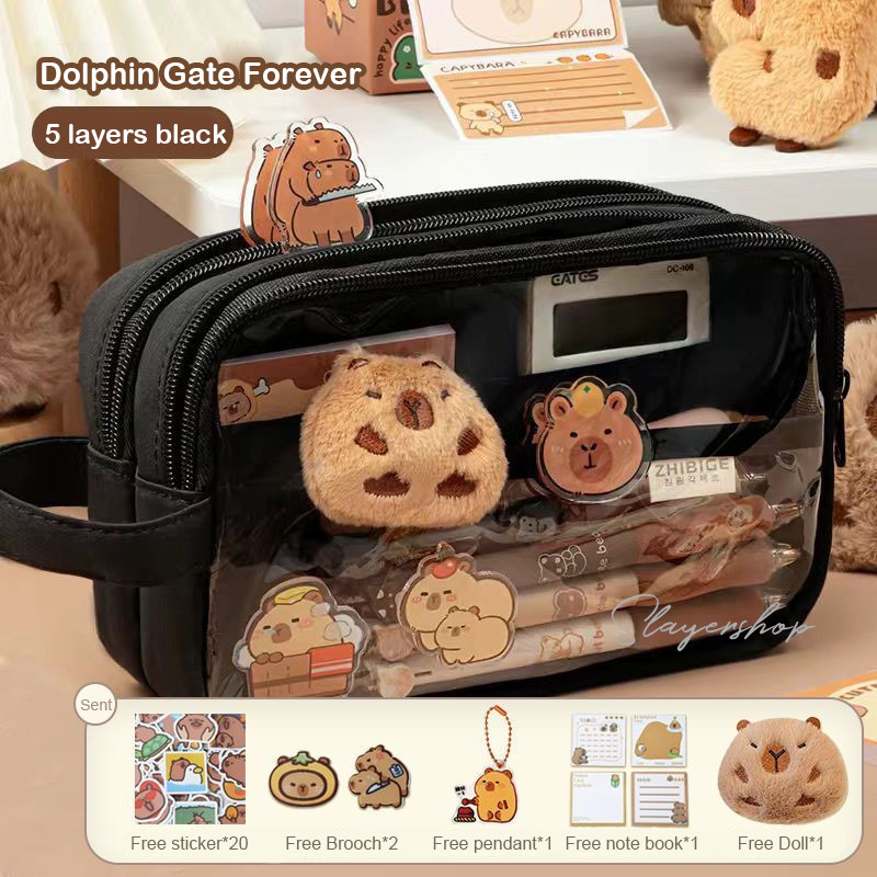 Capybara Tempat alat tulis kotak pensil aesthetic Tas PenaTempat Pencil Tas Pensil kapasitas besar