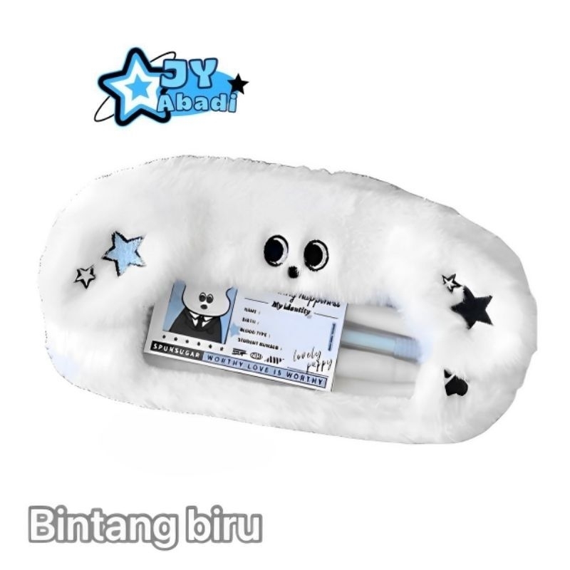 KOTAK PENSIL LUCU KOREA BULU KAPAS STATIONERY BAG BAHAN LEMBUT GEMES, FREE GANTUNGAN KUNCI MULTIFUNGSI SB-1