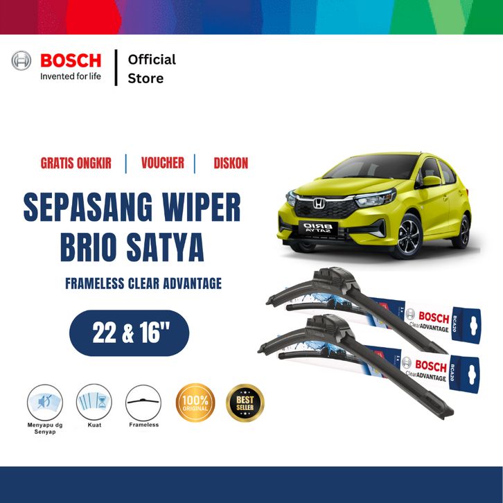 Bosch Sepasang Wiper Mobil Honda Brio Satya Frameless Clear Advantage 22 dan 16 Inci