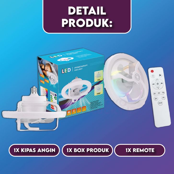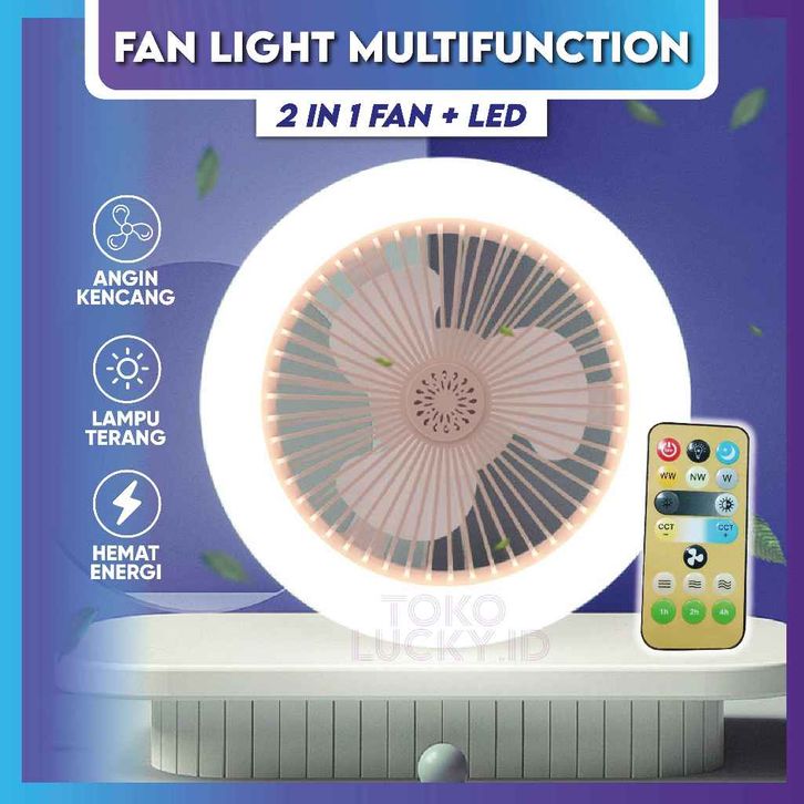 WEWANT Lampu Kipas Angin Plafon Gantung Minimalis RGB Rotation 360° Remote 3 Warna LED