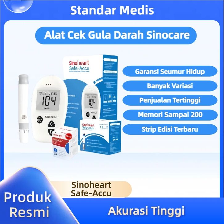 Alat Cek Gula Darah Sinocare/Sinoheart Safe Accu Alat ukur Tes Darah Strip Gula Darah Alat Gula
