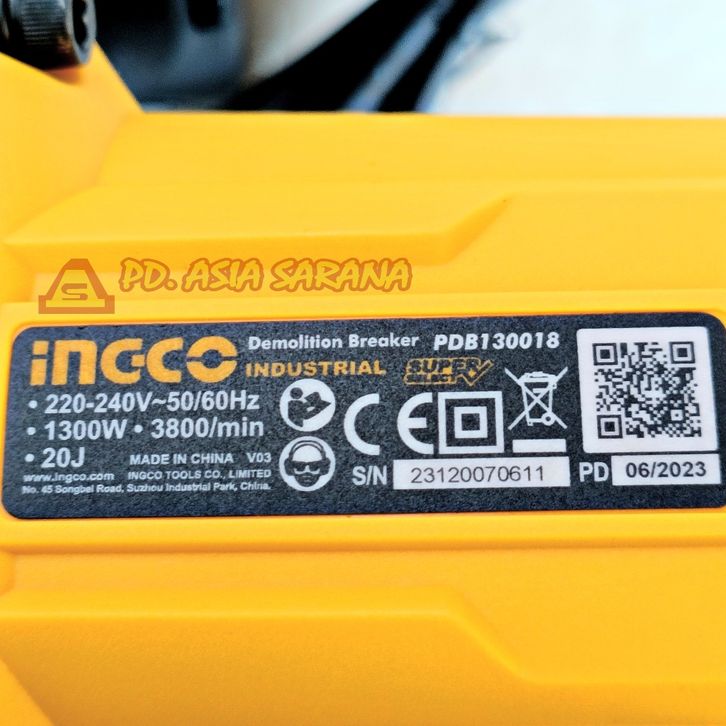 Demolition Jack Hammer (20J) 7Kg INGCO PDB130018 Mesin Bobok Beton Hex