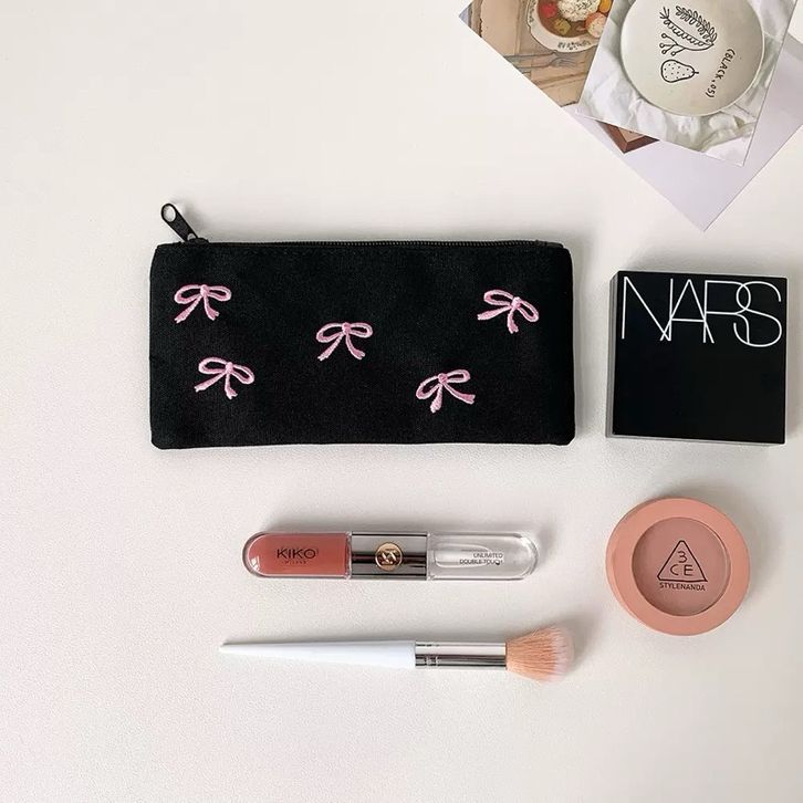 GROSIR PINKY ROW - Pink Ribbonie Slim PENCIL CASE - Pouch Pita - Pouch Make Up - Dompet Tipis uhihs